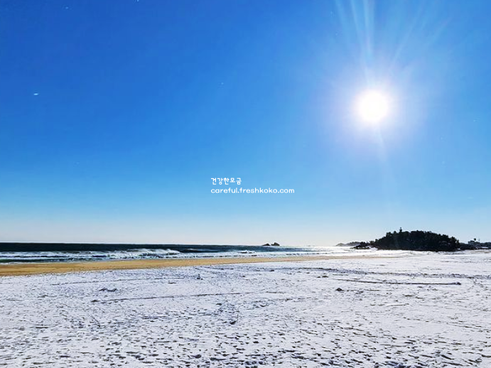 송지호 해수욕장은 고요하고 맑은 풍경으로 마음을 편안하게 해주는 곳이었습니다. 넓고 깨끗한 해변이 펼쳐져 있어 겨울에도 여유로운 산책을 즐기기에 좋았었습니다.