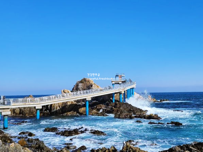 백섬해상전망대는 고성의 맑고 푸른 바다를 한눈에 감상할 수 있는 특별한 장소였습니다. 전망대까지 이어지는 길은 바닷바람과 함께 걷기 좋은 데크로 잘 정비되어 있어 기분 좋게 산책을 즐길 수 있었던 강원도 고성 가볼만한곳 베스트10입니다.