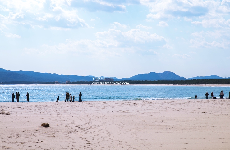 모래사장은 부드럽고 깨끗해서 신발을 벗고 걸어도 발이 편안했으며, 파도 소리가 잔잔히 들려 기분이 한결 상쾌해졌습니다. 특히 해변 뒤로 이어진 소나무 숲은 바닷바람을 막아주며 특별한 여유를 선사해 주었습니다.