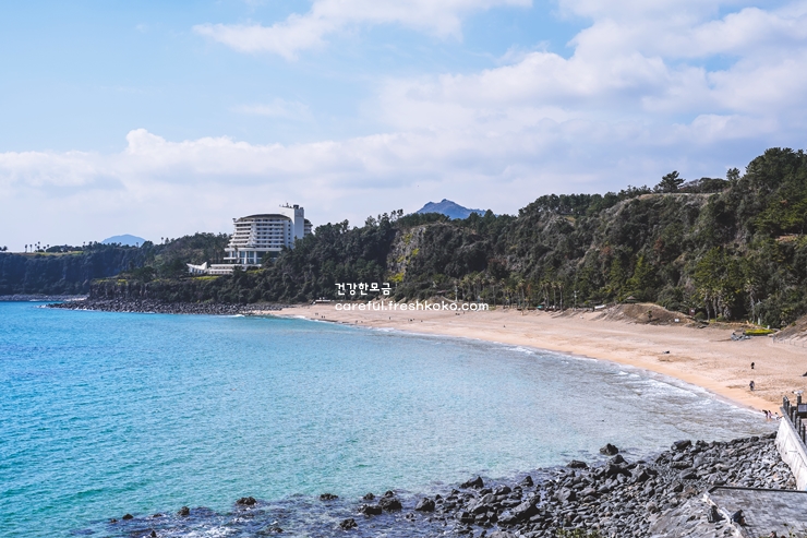 중문색달해수욕장은 제주에서 가장 유명하고 아름다운 해변 중 하나였습니다. 도착하자마자 넓게 펼쳐진 백사장과 맑고 깨끗한 바다가 시선을 사로잡은 제주도 여행코스 2박3일 여행지 입니다.