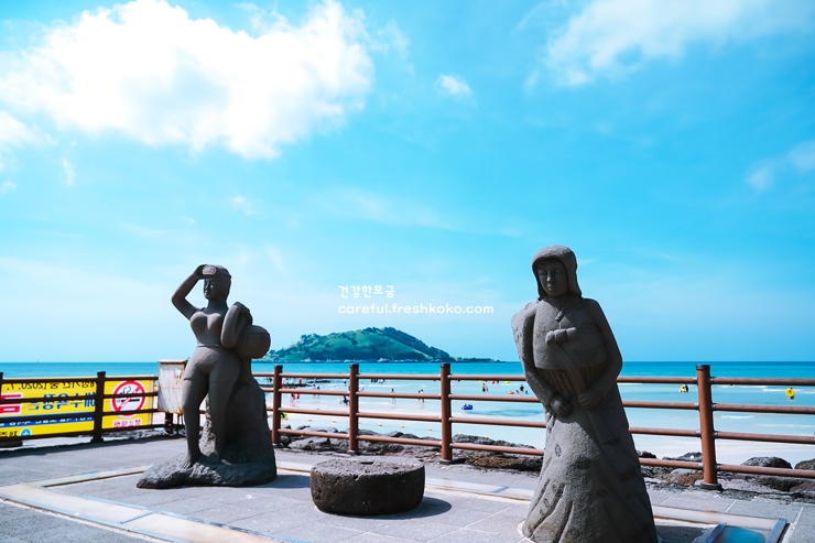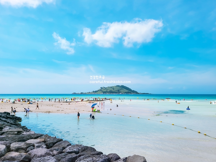 비양도의 아름다운 풍경을 바라보면서 물놀이를 즐길 수 있는 제주도 여행코스 2박3일 명소 입니다. 해변에서 조금 떨어진 곳에 산책로가 있어 바다와 자연을 가까이에서 느끼며 걷기 좋았습니다. 방문객들이 많지 않아 한적하고 평화로운 분위기 속에서 바다를 즐기기에도 좋았어요.