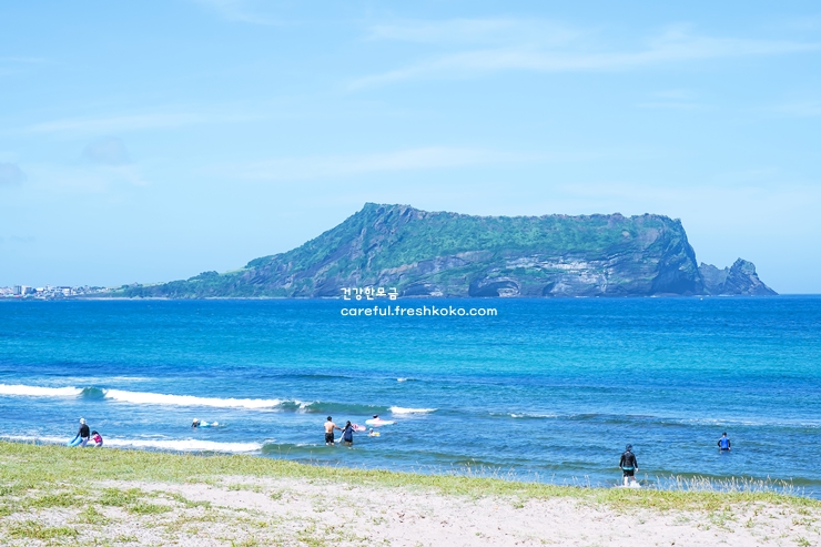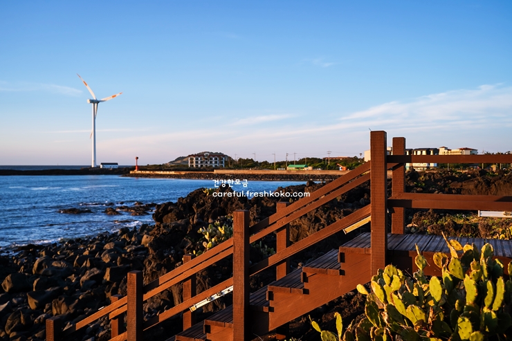 비양도의 아름다운 풍경을 바라보면서 물놀이를 즐길 수 있는 제주도 여행코스 2박3일 명소 입니다. 해변에서 조금 떨어진 곳에 산책로가 있어 바다와 자연을 가까이에서 느끼며 걷기 좋았습니다. 방문객들이 많지 않아 한적하고 평화로운 분위기 속에서 바다를 즐기기에도 좋았어요.