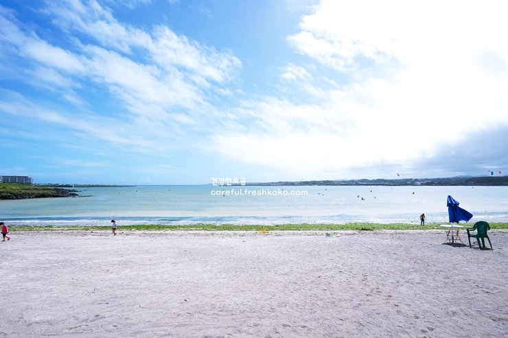 신양섭지코지 해수욕장은 제주에서 가장 아름다운 해변 중 하나로, 도착하자마자 맑고 깨끗한 바다와 하얀 모래가 눈에 들어왔습니다. 해변은 넓고 한적해서 여유롭게 바다를 즐길 수 있었어요.