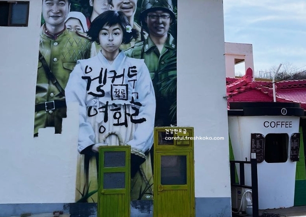 벌교 월곡영화골 벽화마을은 골목골목마다 이야기가 살아 숨 쉬는 보성 가볼만한곳 베스트10 이었습니다. 마을에 들어서자마자 알록달록한 벽화들이 시선을 사로잡았고, 그 속에 담긴 소소한 이야기가 마음을 따뜻하게 만들어 주었습니다. 영화 ‘태백산맥’의 배경이 된 곳답게, 곳곳에 영화 속 장면을 떠올리게 하는 벽화와 소품들이 자리하고 있었습니다.
