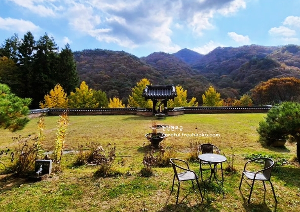 사찰 한편에 흐르는 계곡은 맑고 차가운 물소리가 들려와 산사의 고요함 속에 생동감을 불어넣었습니다. 잠시 계곡 옆 벤치에 앉아 자연의 소리를 들으며 마음을 쉬게 하는 시간이 참 좋았습니다. 대원사는 단순히 사찰을 보는 것을 넘어 자연과 신앙이 하나로 어우러진 특별한 공간이었습니다.