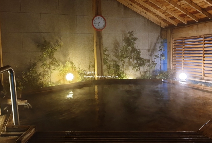 숙박은 패밀리 스파룸을 이용하였는데, 객실 내에 개인 온천탕이 있어 프라이빗하게 온천을 즐길 수 있었습니다. 온천수는 미끌거림 없이 부드럽고, 목욕 후에는 피부가 뽀득뽀득해지는 느낌이 들었습니다.