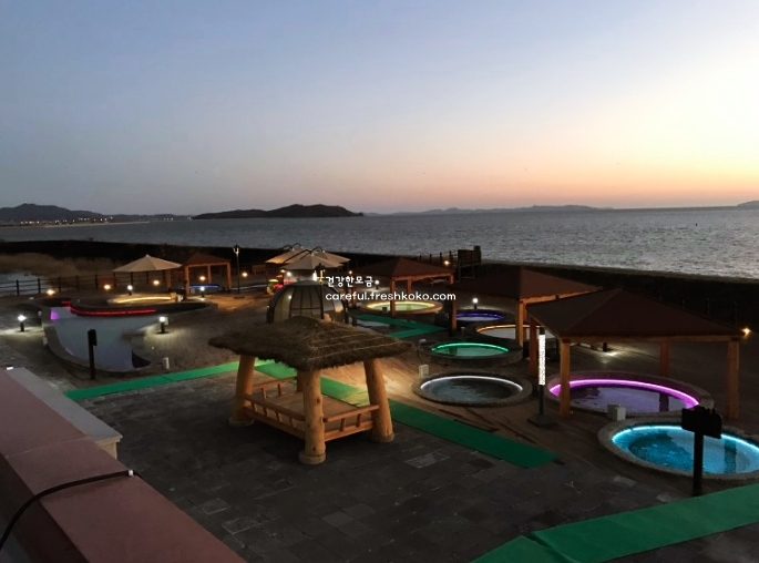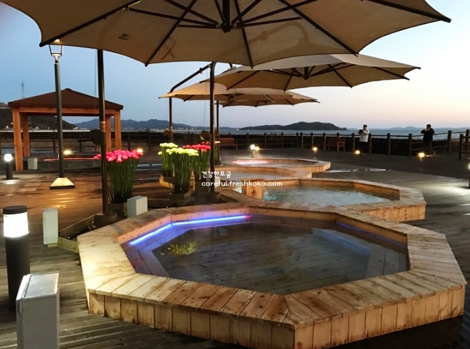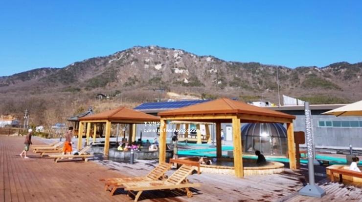 온천수는 인위적인 소독이나 정화 없이 매일 천연 그대로 사용되며, 이로 인해 물빛이 약간 탁하게 보였습니다. 노천탕에서는 바다와 산이 어우러진 아름다운 풍경을 감상하며 온천욕을 즐길 수 있는 국내 겨울 온천여행 추천 여행장소 입니다.