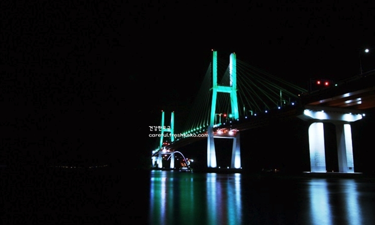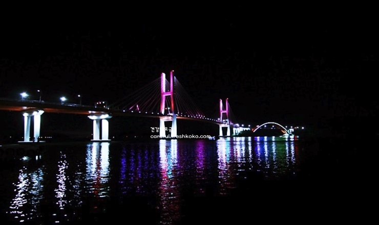 실안낙조로 유명한 남해 가볼만한곳 베스트10으로 일몰 시간이 되면 하늘과 바다가 붉게 물들어 장관을 이룹니다. 어둠이 깔리자 대교의 조명이 하나둘씩 켜지며 화려한 야경이 펼쳐졌습니다. 다리의 조명과 주변의 불빛들이 어우러져 환상적인 풍경을 자아냈습니다.