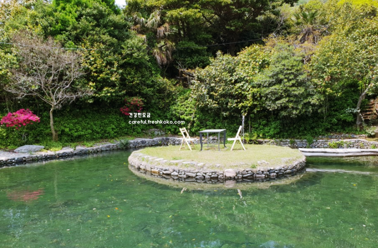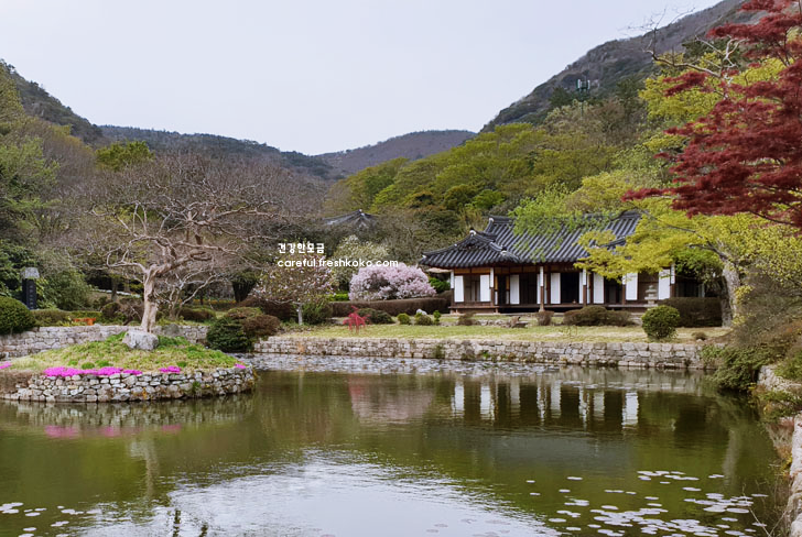 산방 주변에는 연못이 자리하고 있었는데, 물 위에 비친 한옥과 나무들이 마치 한 폭의 수채화 같았습니다. 연못 근처에 놓인 작은 다리를 건너며 주변 풍경을 천천히 둘러보는 시간은 마음을 차분하게 만들어 주었습니다. 산방 안뜰에는 소나무와 대나무가 조화를 이루고 있어 자연 속에서 쉼을 느끼기에 더없이 좋았습니다.