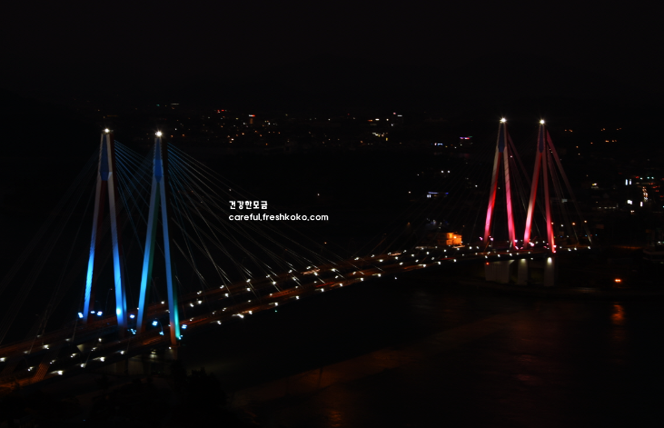 저녁이 되자 타워와 주변이 조명으로 밝혀지며 또 다른 매력을 선보였습니다. 밤하늘 아래에서 타워에서 본 섬들과 바다는 낮과는 또 다른 낭만적인 분위기를 자아냈습니다.