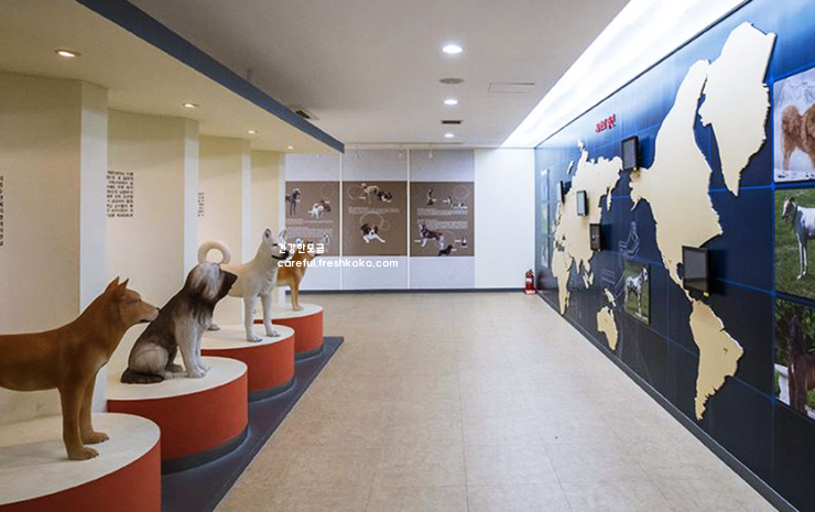 입구에 들어서면 진도개의 역사와 특징을 알 수 있는 전시관이 있어 흥미로웠고, 그들의 뛰어난 지능과 충성심에 대해 새롭게 배울 수 있었습니다. 전시관을 지나 야외로 나오니 실제 진도개를 볼 수 있는 견사와 체험 공간이 마련되어 있었습니다.