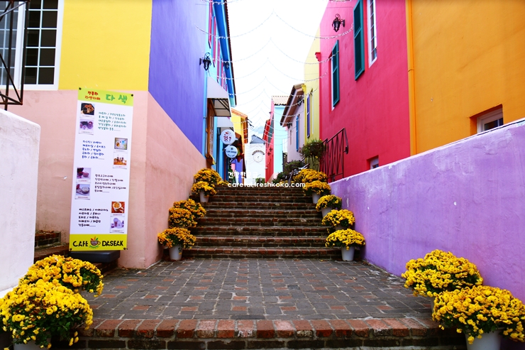 메타프로방스에 도착하니 알록달록한 건물들이 마치 유럽의 작은 마을에 온 듯한 분위기를 자아낸 담양 가볼만한곳 베스트10입니다. 건물마다 독특한 색감과 디자인이 돋보여 골목을 걷는 것만으로도 즐거움이 가득했습니다.