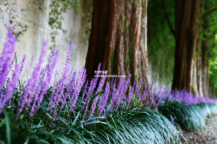 특히, 여름의 푸르름 속에서 맥문동이 보랏빛으로 물들어 있는 모습은 숲길의 분위기를 더욱 화사하게 만들어주었습니다. 나무 사이로 부는 바람은 시원하면서도 상쾌했고, 자연이 주는 고요함이 마음속까지 전해졌습니다.