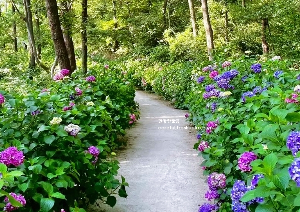 수국으로 꾸며진 포토존은 많은 방문객들에게 인기 있는 장소로, 자연 속 특별한 추억을 남기기에 완벽했습니다. 전망대 주변 산책로는 꽃과 나무가 어우러져 있어, 걷는 것만으로도 힐링되는 기분이 들었습니다.
