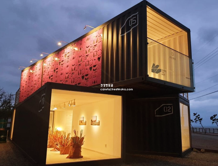 파크 내부에는 큰 창으로 바다가 보이는 휴게 공간이 마련되어 있어 잠시 앉아 바다 풍경을 즐길 수 있었습니다. 바람이 부드럽게 불어오는 야외 공간에서는 작품과 더불어 주변 자연 경관을 함께 감상할 수 있었습니다.