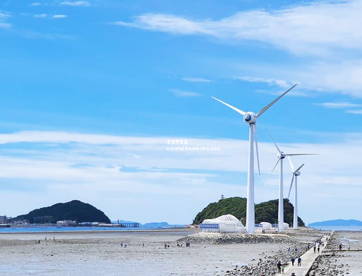 물이 빠질 때는 사람들이 갯벌 체험을 하며 자연을 즐기는 모습을 볼 수 있었습니다. 특히 아이들이 갯벌에서 뛰노는 모습이 인상적이었고, 가족 단위 방문객들에게도 매력적인 장소라는 생각이 들었습니다. 바닷길을 걷다 보면 바다 위로 펼쳐진 하늘과 수평선이 맞닿아 끝없이 이어지는 듯한 풍경이 마음을 차분하게 만들어 주었습니다.