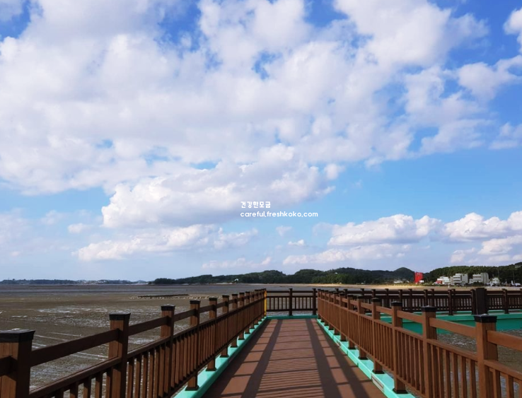 산책로는 넓고 정돈이 잘 되어 있어 걷기에 편리했고, 주변에 작은 벤치들이 있어 잠시 앉아 풍경을 감상하기에도 좋았습니다. 물이 빠진 시간에는 갯벌이 드러나 또 다른 매력을 보여주었고, 바닷물 냄새와 파도 소리가 어우러져 자연의 생동감을 느낄 수 있었습니다.