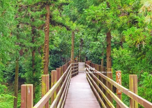 나무 데크로 이어진 길을 따라 걷다 보면 숲의 깊숙한 곳까지 편안하게 이동할 수 있습니다. 숲속에는 편백나무를 활용한 힐링 시설도 있어, 편백 향이 가득한 방에서 조용히 쉴 수도 있습니다.