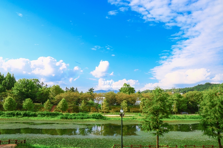 특히 가을에는 단풍이 더해져 더욱 운치 있는 풍경을 감상할 수 있습니다. 공원 안에는 벤치와 쉼터가 곳곳에 있어 잠시 쉬어가기에도 좋은 환경이 마련되어 있습니다. 가족 단위 방문객들이 돗자리를 펴고 여유롭게 시간을 보내는 모습도 자주 보입니다.