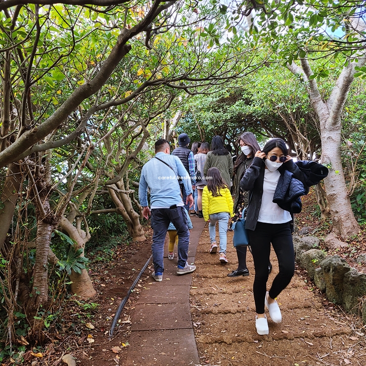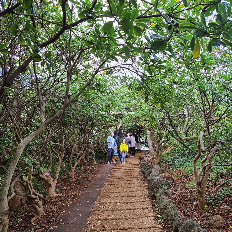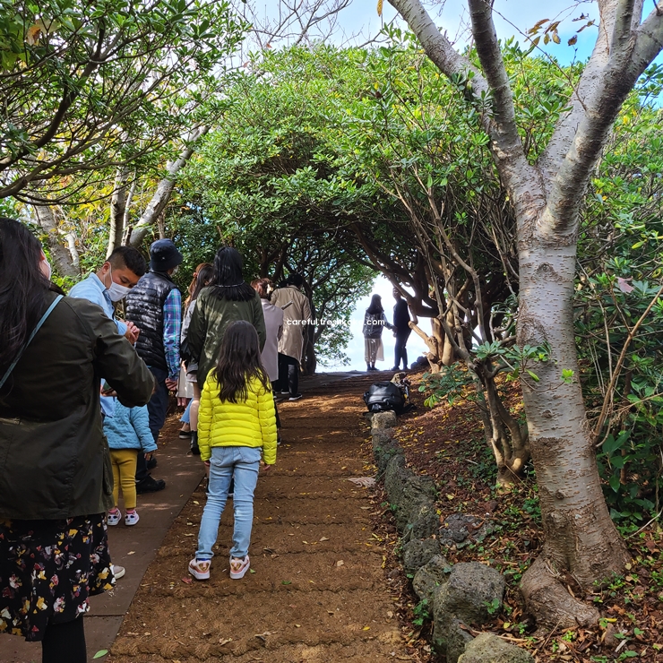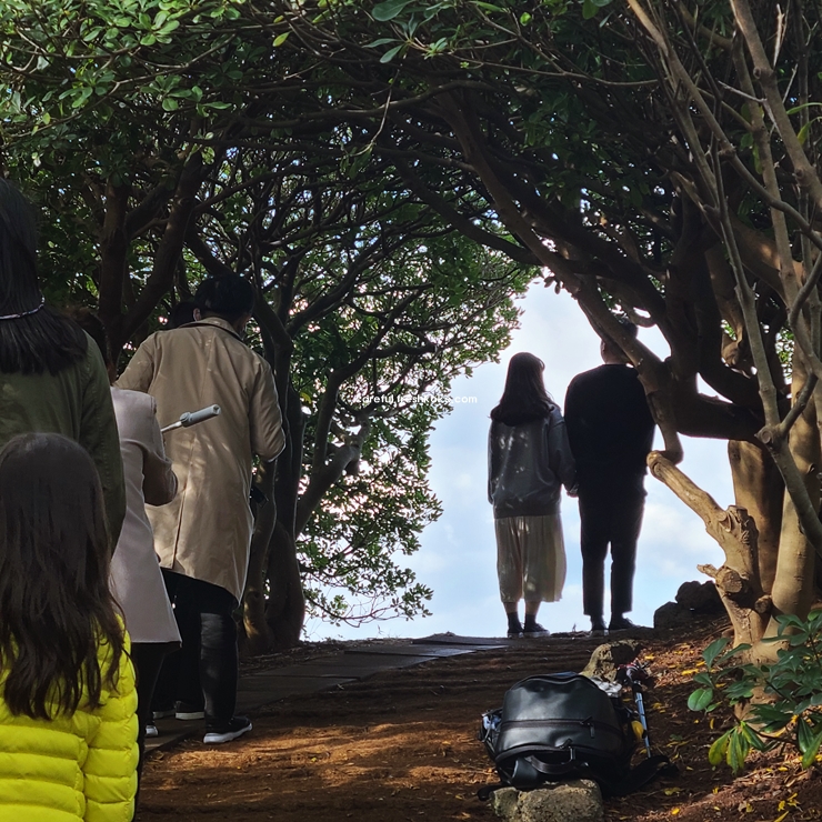 터널처럼 형성된 나무 사이에서 바다를 배경으로 사진을 찍으니 제주에서만 느낄 수 있는 특별한 순간이었습니다. 연인들이 많이 찾는다는 말이 실감 날 정도로 ‘인생샷’을 남기기에 더없이 좋은 장소였습니다.