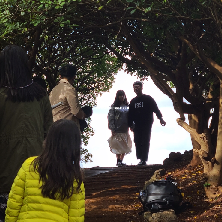 터널처럼 형성된 나무 사이에서 바다를 배경으로 사진을 찍으니 제주에서만 느낄 수 있는 특별한 순간이었습니다. 연인들이 많이 찾는다는 말이 실감 날 정도로 ‘인생샷’을 남기기에 더없이 좋은 장소였습니다.
