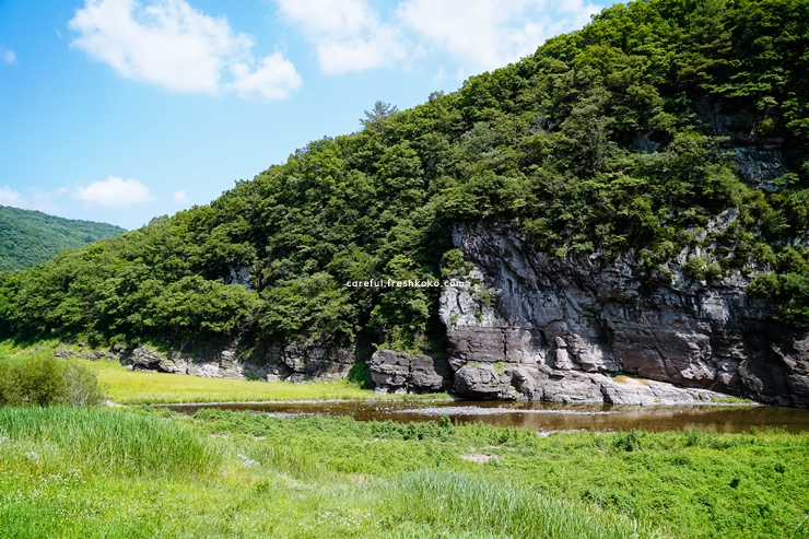 계절 따라 주변 풍경이 달라지며 바위의 분위기도 조금씩 달라질 것 같았습니다. 유리 울타리 너머로 바라보아야 하지만 그 거리마저도 신비로움을 더해주었습니다.