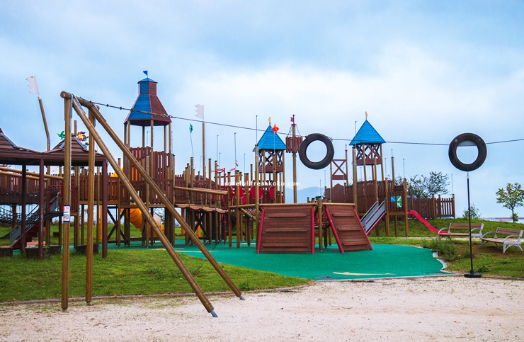 장보고어린이공원에 도착하니 알록달록한 놀이기구들이 한눈에 들어와 아이들이 금세 신이 났던 완도 가볼만한곳 베스트10입니다. 바닥은 부드러운 탄성 재질로 되어 있어 안전하게 뛰어놀 수 있어 안심이 됐습니다.