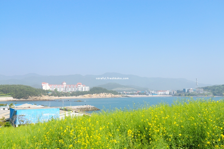 일몰 시간이 되면 바다가 붉게 물들면서 고요한 분위기를 더해주었습니다. 유채꽃이 아름다운 수성당입니다.