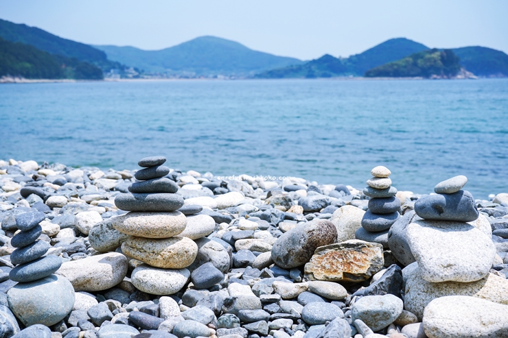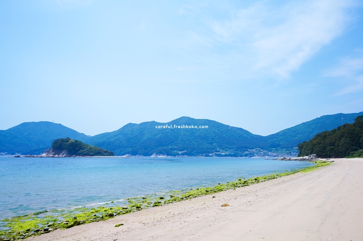 바위들이 드문드문 자리 잡고 있어 사진을 찍기에도 분위기가 잘 어울렸습니다. 파도가 잔잔해서 어린아이들과 함께 놀기에도 무리가 없어 보였습니다. 주변에 상가나 매점은 적지만 오히려 자연스러운 모습 그대로를 느낄 수 있었습니다.
