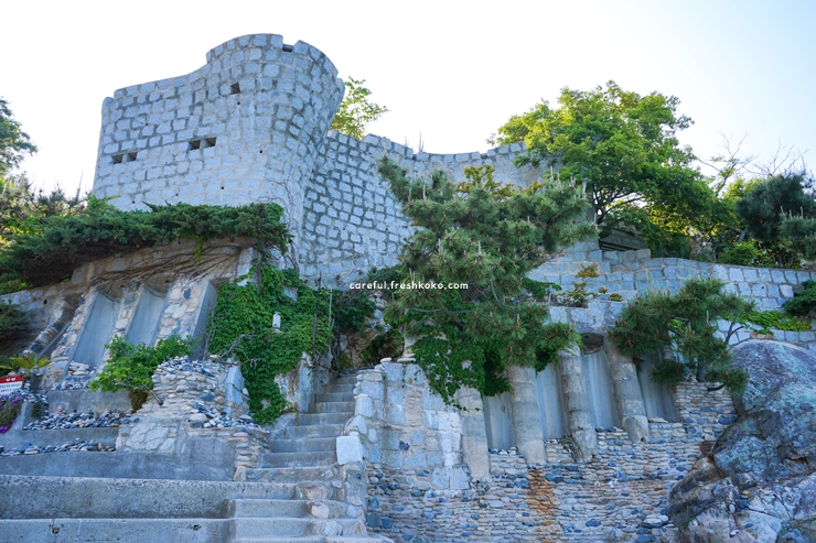 매미성은 바다를 마주한 언덕 위에 홀로 서 있는 돌성으로 처음 마주했을 때부터 인상적인 풍경을 보여주었습니다. 성을 가까이서 보면 하나하나 손으로 쌓아 올린 듯한 정성이 느껴졌고 그 구조가 매우 독특했던 거제도 가볼만한곳 베스트10이었습니다.