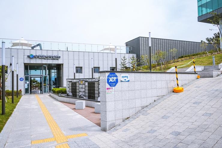 공원 안에는 수산업 관련 전시물이 정돈되어 있었고 옛날 어업 도구들도 전시되어 있었습니다. 바다를 향해 난 산책로를 따라 걸으면 조용히 바다를 감상할 수 있어 좋았습니다.