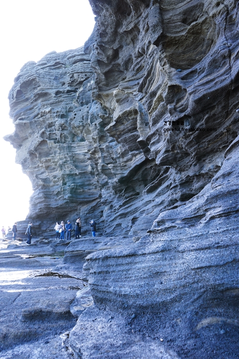 절벽 한편에는 작은 동굴과 굴곡진 바위들이 자리 잡고 있습니다. 이곳은 용머리해안의 또 다른 매력 포인트입니다. 특히 사진을 찍기에 좋은 장소로, 방문객들은 절벽 앞에서 기념사진을 남기곤 합니다. 바다를 배경으로 서 있는 절벽의 모습은 그야말로 장관입니다.