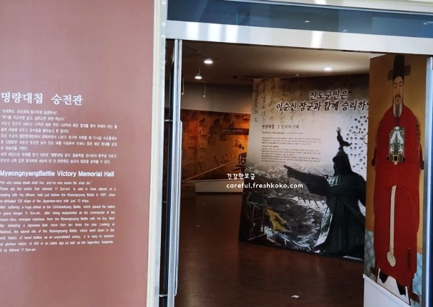우수영국민관광지에 들어서니 이순신 장군의 기개가 느껴지는 듯한 분위기가 감돌았습니다. 전시관 안에는 정유재란 당시의 기록과 유물이 잘 정리되어 있어 흥미로웠습니다.