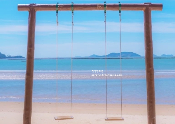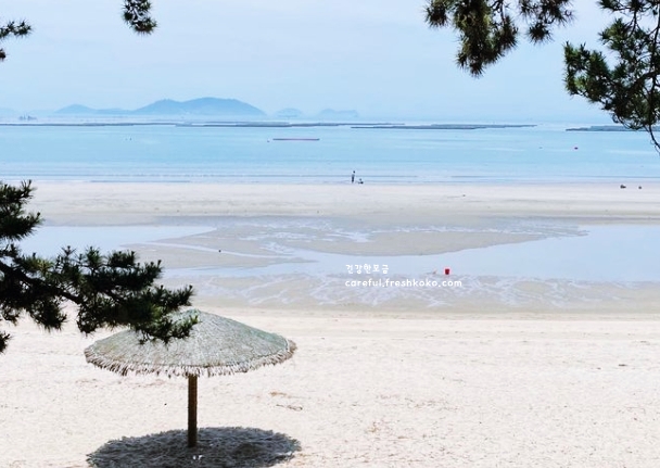 해변은 넓고 모래가 부드러워 맨발로 걷기에도 좋았습니다. 바다 수심이 완만해서 가족 단위로 물놀이 즐기기에 안성맞춤이었습니다. 멀리서 배가 오가는 모습도 보여 여유로운 풍경을 더해주었습니다. 주변이 한적해서 조용히 쉬어가기에도 참 좋았습니다.