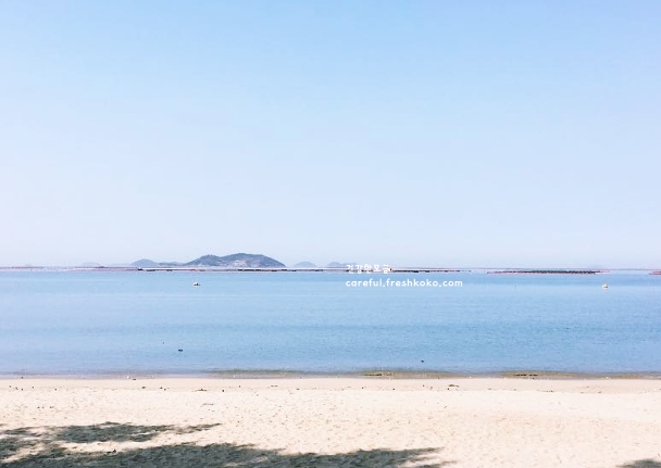해변은 넓고 모래가 부드러워 맨발로 걷기에도 좋았습니다. 바다 수심이 완만해서 가족 단위로 물놀이 즐기기에 안성맞춤이었습니다. 멀리서 배가 오가는 모습도 보여 여유로운 풍경을 더해주었습니다. 주변이 한적해서 조용히 쉬어가기에도 참 좋았습니다.